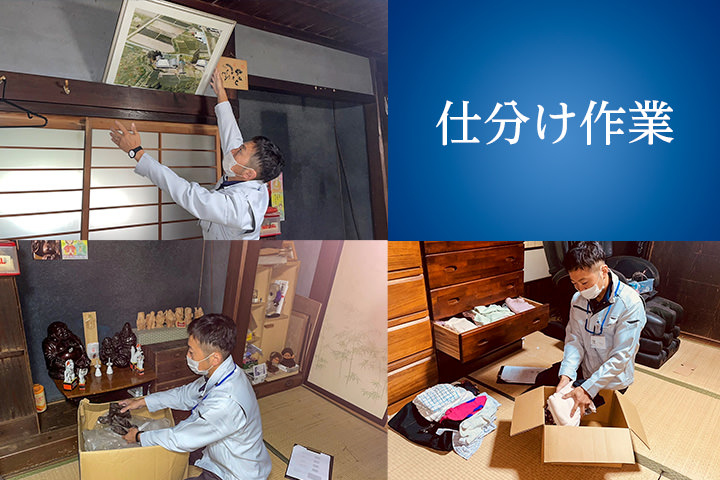 遺品整理が故人様の思い出を汲みながら丁寧に仕分け作業をおこないます。ご遺族様に、ご依頼者様が遺品の全てを把握できていなかった可能性も考慮し、丁寧に整理いたします。遺品に関しましては、こちらで分別作業を行いますので、お客様のご負担になる分別・整理・清掃の必要はありません。